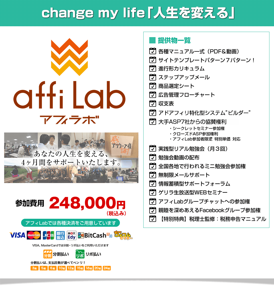 また、アフィLabは単なるノウハウ販売ではなく、研究所という環境も提供しているわけです。